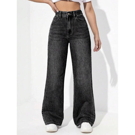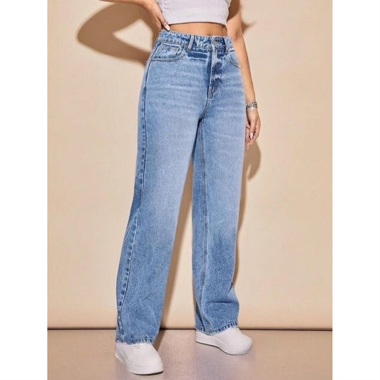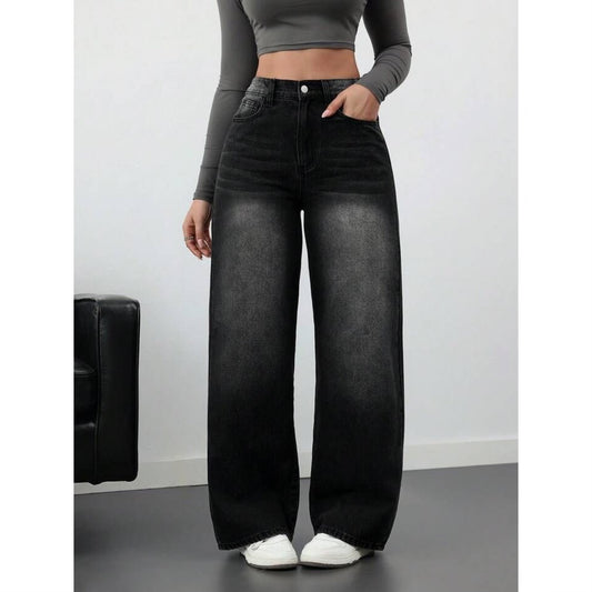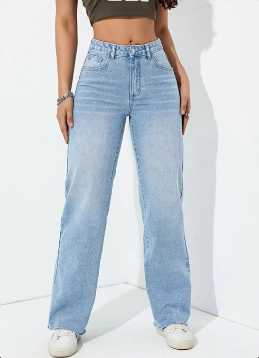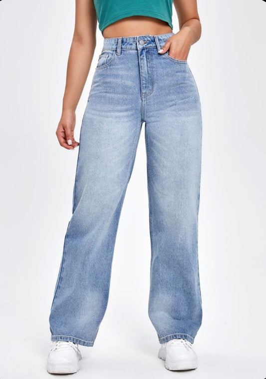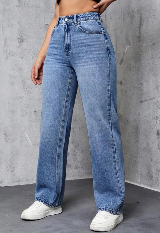 Highwaist Stretchable Whisker Wash Baggy Fit Denim