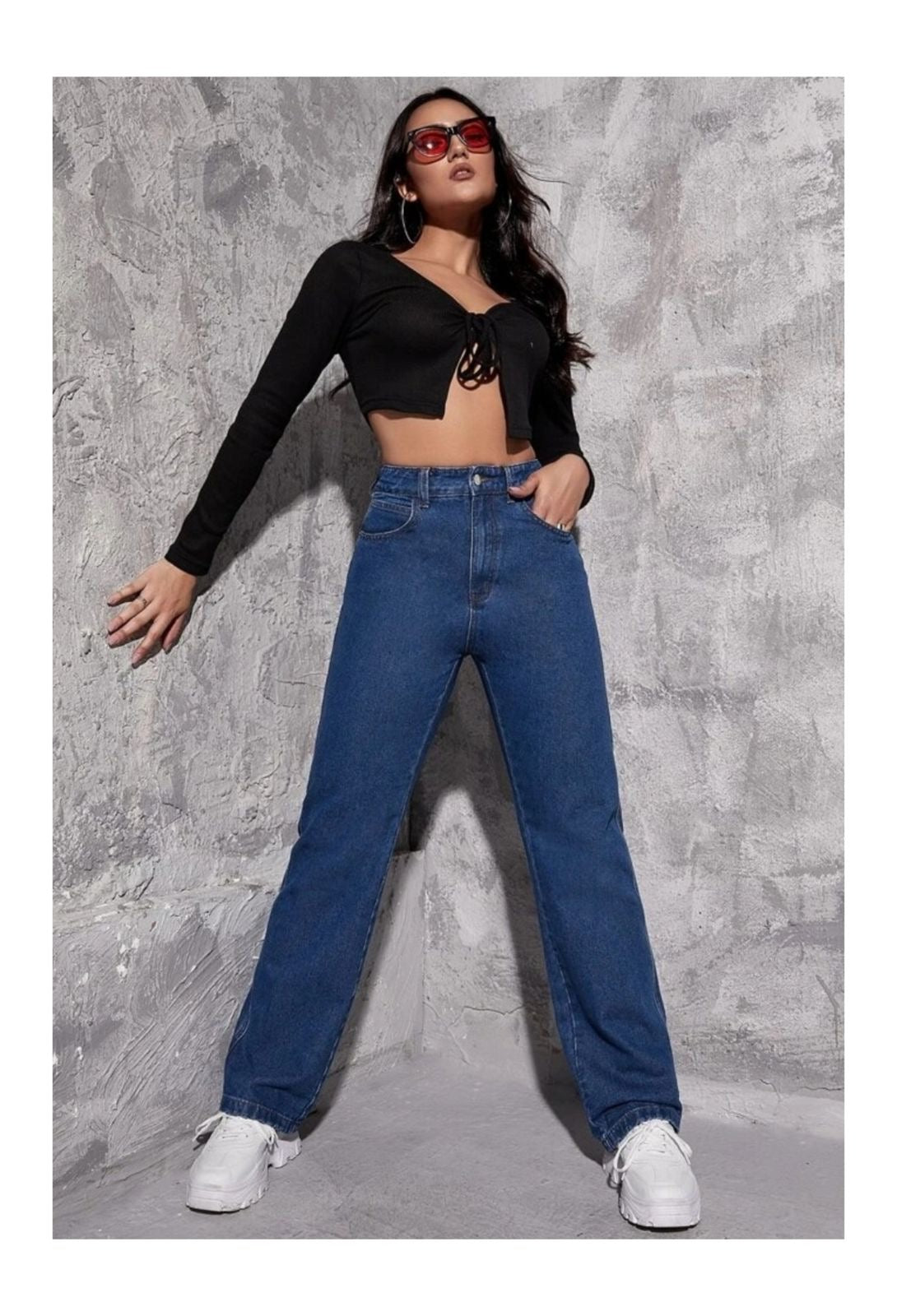 These dark blue high-waist straight fit jeans offer a timeless look with a modern edge. Designed with a structured wide-leg silhouette, they provide a flattering fit and all-day comfort. Made from premium denim, they feel soft yet durable for everyday wear. The high-rise waist ensures a secure and stylish fit, making them a versatile choice for any wardrobe.